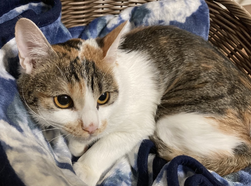| 特徴(性格など) | とても綺麗な三毛猫です。性格ははじめは怖がりですが、とても人懐っこく甘えん坊ですぐにぐるぐる喉を鳴らします。 | ||