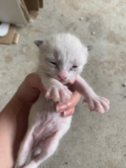| 特徴(性格など) | 真っ白の子猫です 体格差がありメス、オスはまだ分かりません。 でもみんなミルクは呑んで元気に鳴くので体調的な問題はなさそうです。 |