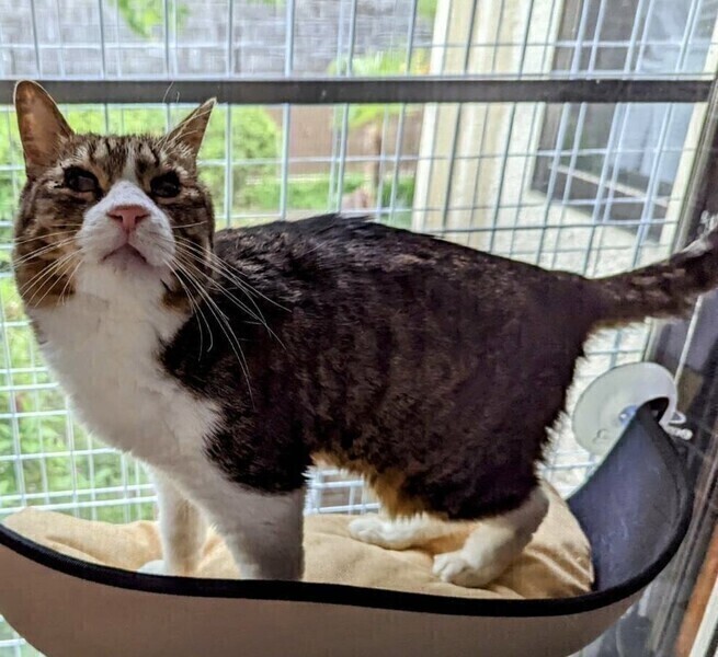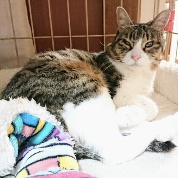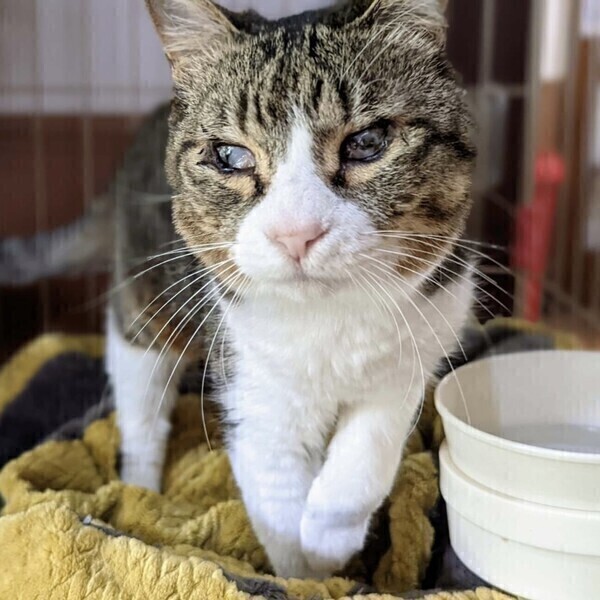| 特徴(性格など) | ◆メーテルちゃん 撫でられるのが好きなキジ白女子 ◯神奈川県内から飼育放棄での持ち込みです。 ○推定12歳弱くらい(2025年5月時点)のキジ白の女の子です。 ○尻尾は長くて真っ直ぐです。 ○柔らかい毛並みをしています。 ○歯は犬歯以外はありません。 ○小さい頃の結膜炎の影響で目が白濁していますが、目は見えているようです。ご飯もトイレもケージの出入りも自分ででき、生活に問題はありません。 ◯撫でられるのが好きで、とっても嬉しそうにしてくれます。ただ抱っこはイマイチなようです。 ◯美味しいドライフードやウェットフードが好きです。 ★ワクチン1回済み、不妊手術済み。 ★猫エイズ、猫白血病ともに陰性。 ★歯は犬歯以外はありません。 ★目が白濁していますが、見えているようで、生活に問題はありません。 ☆単身のかたはご相談ください。 ★★お見合いを設定することも可能です。まずはお申込みください★★ |