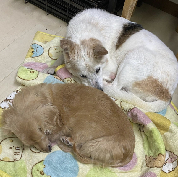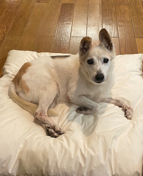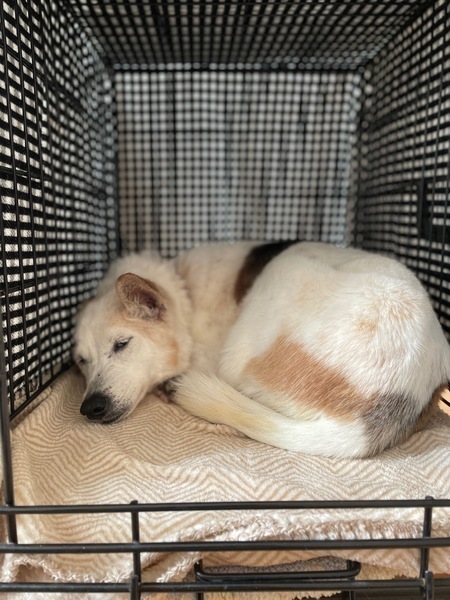 | 特徴(性格など) | 推定10歳のミックス犬。 人見知りで怖がりや。 その反面、仲間には優しい子。 お昼寝したりクレートで休憩したりと、自分のペースでのんびり過ごすことが多いです。 お留守番やひとりぼっちが苦手な寂しがり屋さんの面もあります。 トイレシートの認識あり。 お散歩トレーニング中ですが、ずいぶんと上手に歩けるようになりました。 |