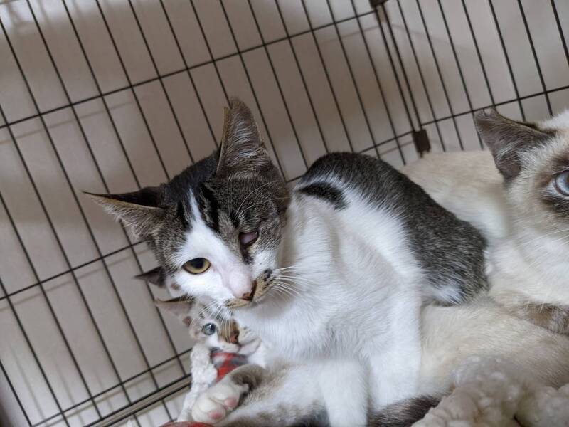 | 特徴(性格など) | ハブに噛まれたけど生き延びました!左眼は失ったけど活発女子だよ♪ キャンディ メス 5ヶ月 久米島でのTNR活動中に保護しました。 ホイップ・チェダー・リコッタと兄妹。 【特徴】 キジシロ 【性格】 ビビりで手を近付けるとペチペチしてきますが、爪は立てません実は甘えたいけど、まだ術をしらないのです。ハブに噛まれるなんて…どれだけ辛かったでしょう。 怖がりなので、兄妹の誰かと一緒か…優しい先住サンが居るお家が希望です。 一匹譲渡可 単身者応募可 60歳以上の応募不可 |