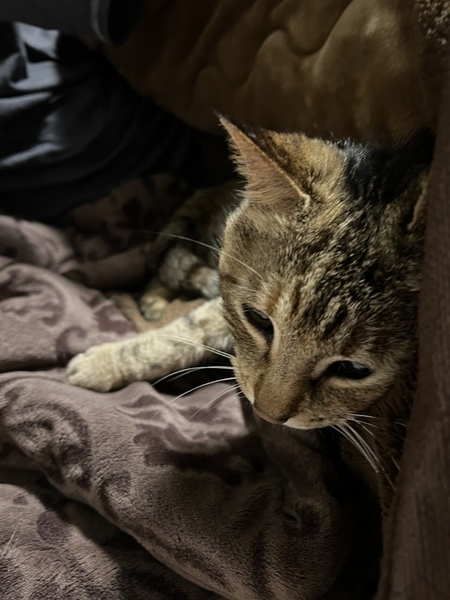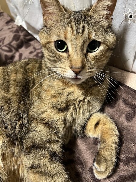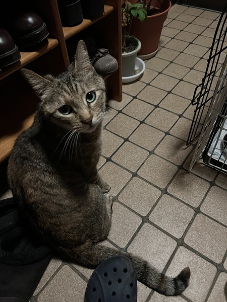 | 特徴(性格など) | 初めて会った日から、すりすりしてきて、ひと馴れ抜群です。 顔は小さく、体の大きめのスタイルの良いキジトラ猫ちゃんです。 抱っこも好きな様で、頭をすり付けて甘えてくる様子はとても可愛いです。ただしつこすぎるとたまに嫌がられてしまいます。 ご飯を食べる時はもぐもぐと話しながら食べるタイプです。そして面白いようによくじゃれます(●´∀`●) |
