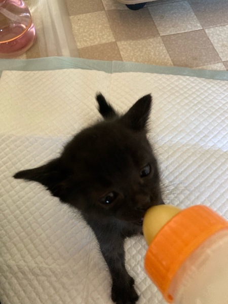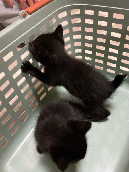 | 特徴(性格など) | 仮称…キキちゃん 1ヶ月位の黒ネコ女子です。 現在、ミルクからほぼ離乳食に移行しています。 少し小柄ですが、4兄妹の中で一番乗りでドライフードも少しずつ食べ始めてます。 別で募集しているポポ、ララ、ココの3匹の兄妹と毎日走り回っています。 出来れば2人ずつのご縁を希望しております。 ・ブロードライン(駆虫薬)滴下済 ・便検査済 ・ワクチン、ウイルス検査はまだ小さいのでしておりません。 |