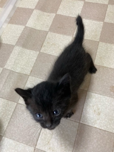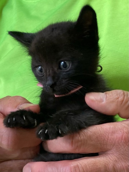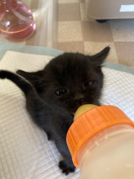 | 特徴(性格など) | 仮称…ララちゃん 1ヶ月位の黒ネコ女子です。 現在、ミルクと離乳食を食べています。 少し食が細く小柄ですが、別で募集しているポポ、キキ、ココの3匹の兄妹と毎日走り回っています。 出来れば2人ずつのご縁を希望しております。 ・ブロードライン(駆虫薬)滴下済 ・便検査済 ・ワクチン、ウイルス検査はまだ小さいのでしておりません。 |