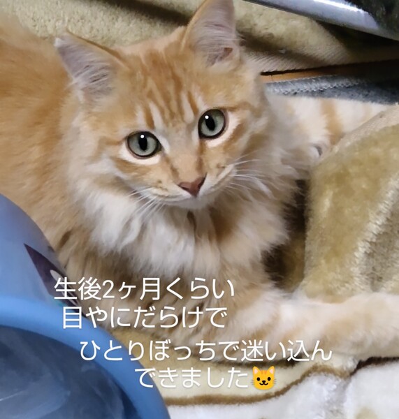 | 里親募集する理由 | 餌やりしていた地域ねこの中に生後2ヶ月くらいで迷い込み、住み着き、21年8月くらいに室内に保護しました。長毛なので、リリースは行きづらいし、やっと甘えられるようになったので。 | ||
