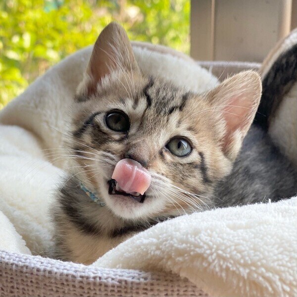 | 特徴(性格など) | ちょっと慎重派「シーザー」くん❤ 回りの兄弟姉妹たち見てから・・の甘えん坊♪ 現在、ドライフードを24時間の置き餌として栄養補給、水分補給のため一日3回パウチ&離乳食を与えています。 <推定誕生日:2022年3月末> |