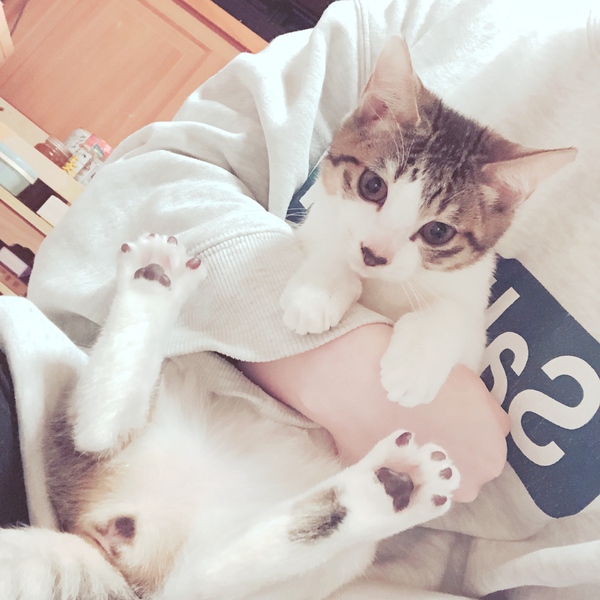 | 特徴(性格など) | 1匹目は キジトラ (賢く・元気な女の子) 2匹目 白多めキジトラ (おてんば娘・よく遊ぶ元気) |