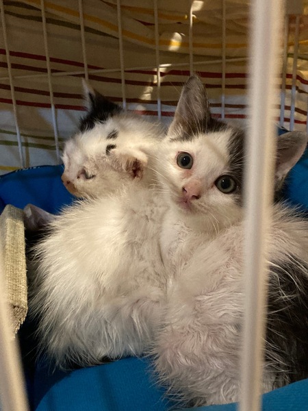 | 特徴(性格など) | 白地に頭がハチワレ模様、身体には数箇所のドット模様です 元気です |