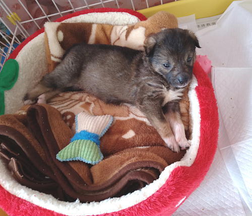 | 特徴(性格など) | 仮愛称:キャンディ 性格:人の手によりミルクから育てられましたので人が大好き、甘えん坊さんのメス子犬です。仲間の犬たちとも元気に遊んでいます。 医療面:健診済み・駆虫済み ノミダニ予防済み 今はワクチン未接種ですが譲渡時にはワクチン接種済みで対応させて頂きます。 |