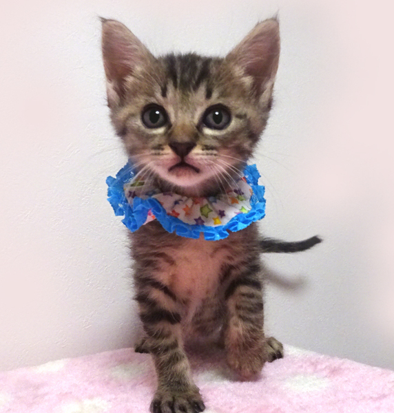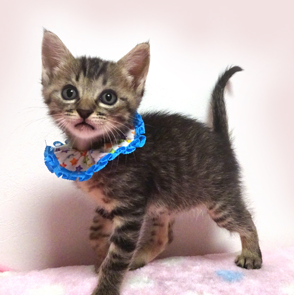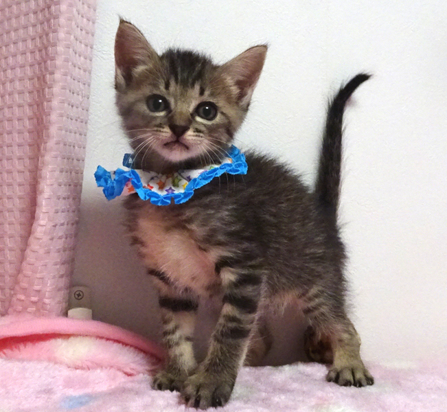 | 特徴(性格など) | 【猫の仮名】 小太郎(こたろう)くん (担当 松嶋) 【毛色・柄】 キジトラ、長いシッポ 【動画】https://youtu.be/tLvASWPl3TQ 小さくてもトイレができる賢い子です♪ 乳飲み子から育てたので大変人慣れしています♪ 人に育てられたので人間を親だと思っています。 猫を飼うのが初めての方でも大丈夫です♪ 走っても大丈夫なペット可のお住まいで、家族の一員として生涯大切にして下さるご家族を募集しています。 まだ小さいので猫だけのお留守番が長時間でないご家族を希望します。 |