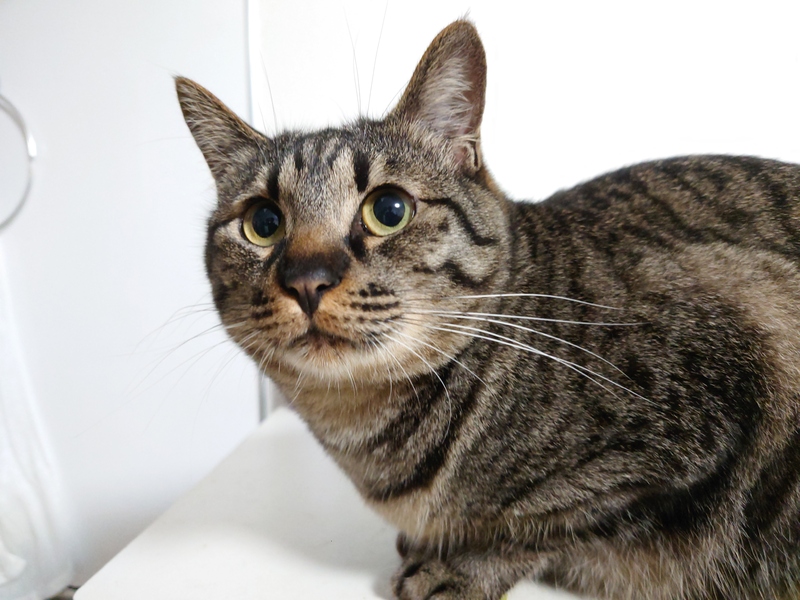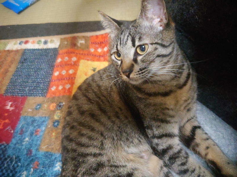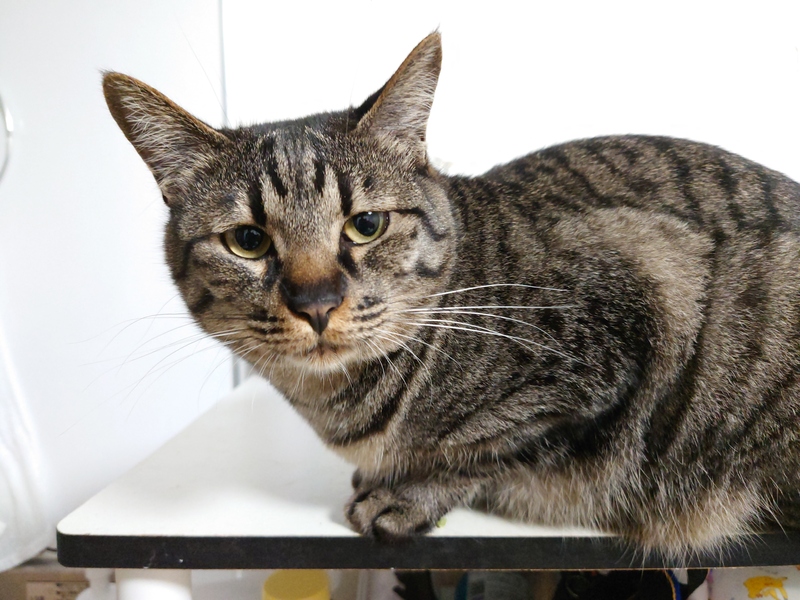 | 特徴(性格など) | とても大人しく、傍に寄り添ってくれるキジトラの女の子です。 とても人好きでお客さんの足元にもスリスリします。 困った様な目やくるんと巻いたしっぽが特徴的でとても可愛いです。 |