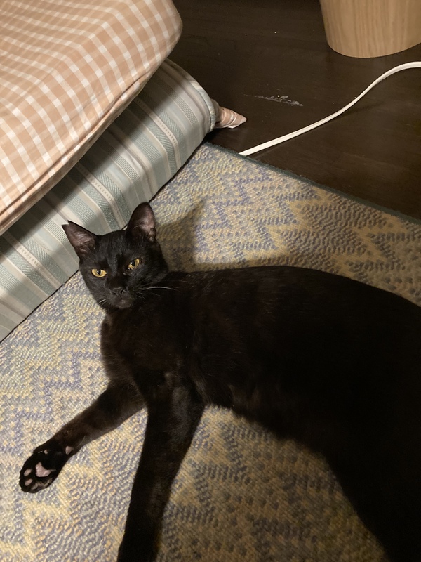 | 特徴(性格など) | 人懐こくて、大人しい黒猫ちゃんです。 よく、くっついてきます。一緒に寝てくれます。 |
