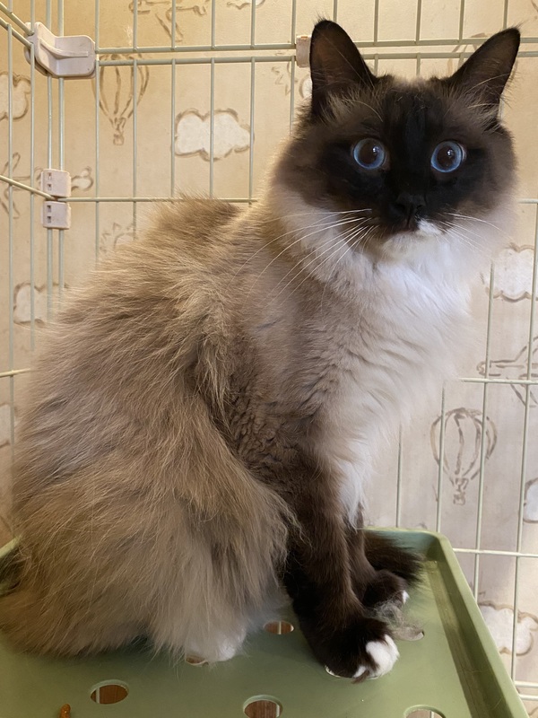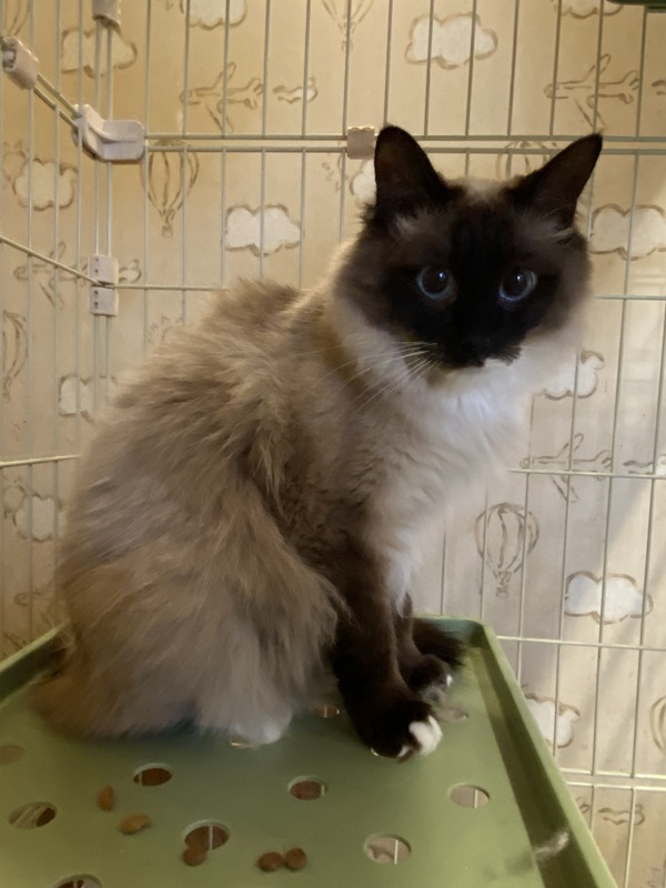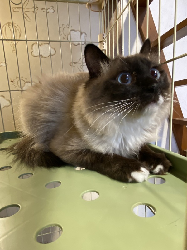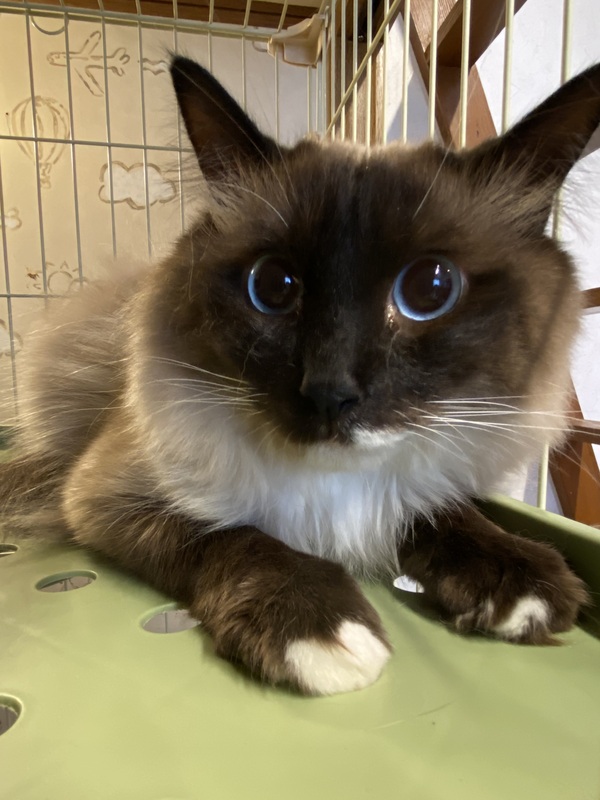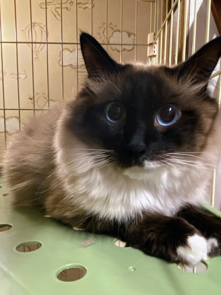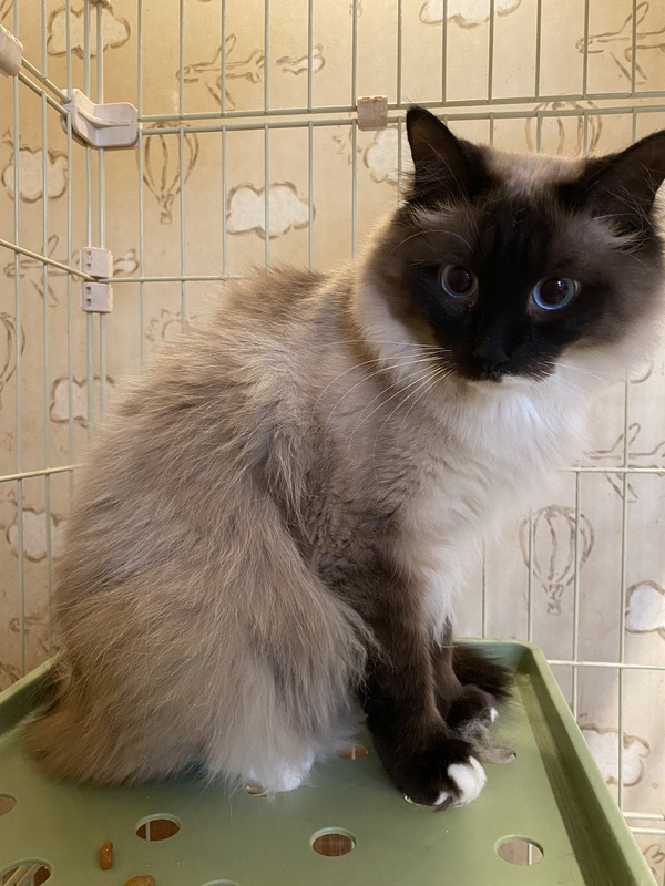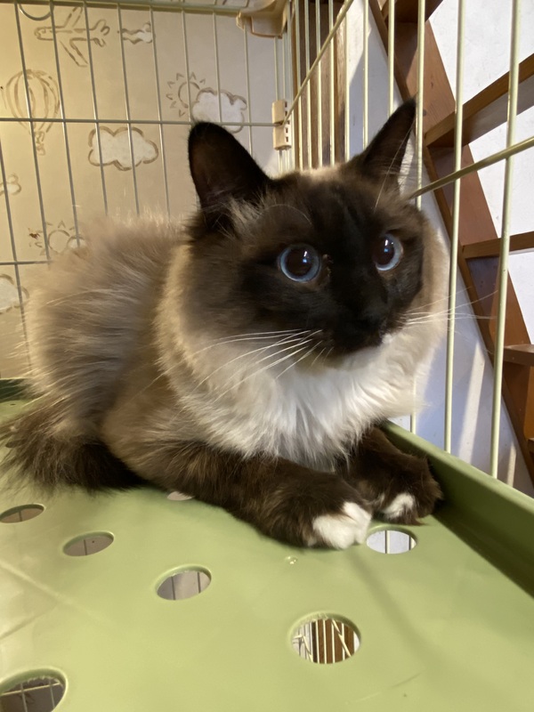 | 特徴(性格など) | ラグドール似の長毛の男の子です。 静かな穏やかな子です。 一緒に保護された兄弟猫と仲良くしています。 |