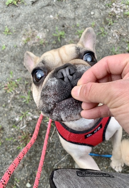 | 特徴(性格など) | フレンチブルドックの女の子 目が見えませんが 生活にもんだいはありません。 性格→甘えん坊で人が大好きです。とても穏やかな性格、老若男女問わず優しく接してくれます。 お留守番→上手にできます。 ※クレートや狭いケージ内でのお留守番はしばらくの間クルクル回ってしまいます。 長めのお留守番の時は広めに囲ったスペースを作ってあげるといいです。 苦手なこと→全盲のため突然の接触や他犬の吠えに怯えてしまうことがあります。お散歩時など初めての犬と関わるときはゆっくり近づいてあげてください。 相手が興奮している場合は無理に接触させず離れてください。 生活→お散歩が大好きです。 夜散歩も上手に歩けます。 ※障害物回避のためリードは短めにもっていただき見守りながらのお散歩をお願いします。 トイレシートの認識できます。 新しい環境に慣れたらトイレの場所も覚えることができます。 暮らし→階段手前にゲート設置。 リプの目線に当たる家具や障害物などは配置変えや工夫をしていただければ問題なく過ごせます。 預かり宅で初めての家庭犬暮らしを練習中です。 他犬との関わり方も上手です。 |