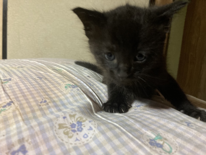 | 特徴(性格など) | 黒猫。 子猫の為、好奇心旺盛 |