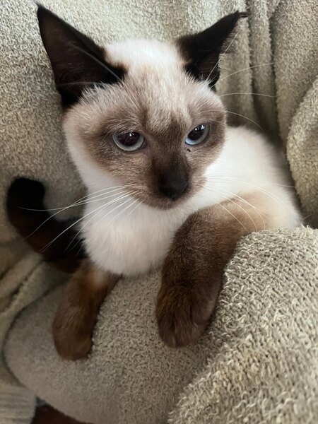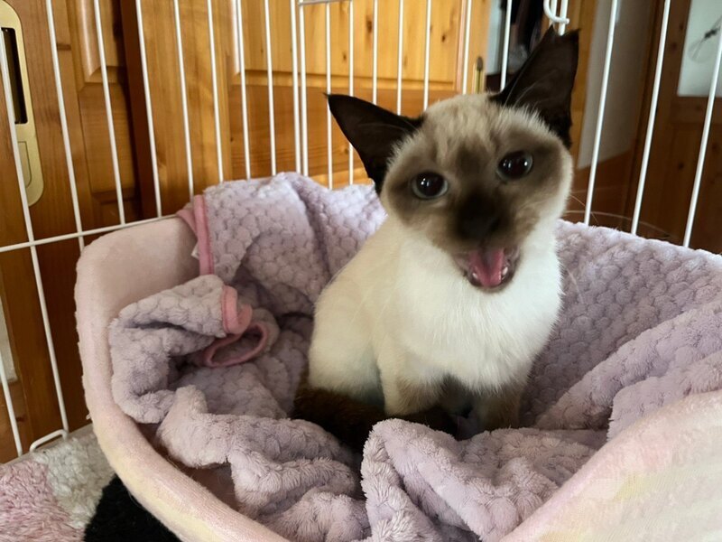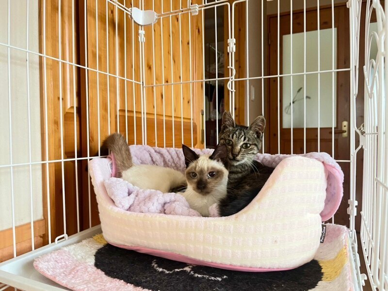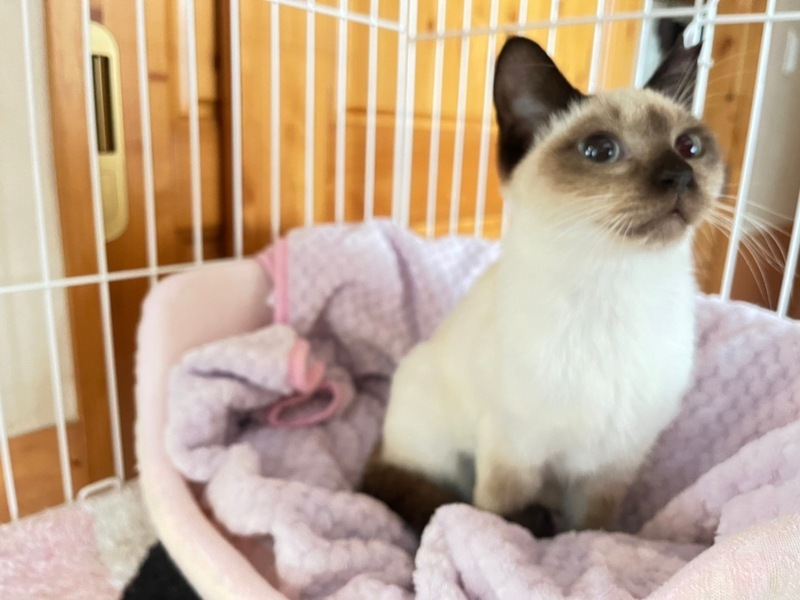 | 特徴(性格など) | シャム模様(仮名リリーちゃん) 懐こく人間大好きです。月齢より体は小さめで、一緒に保護し現在里親募集をしている仮名:コリンくん(キジ柄)と兄妹です。 ウィルス検査済み(エイズ擬陽性の為後日遺伝子検査予定))・不妊手術済み・3種ワクチン済み・駆虫・検便検査済みです。 |