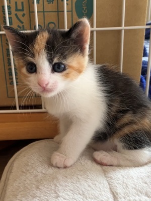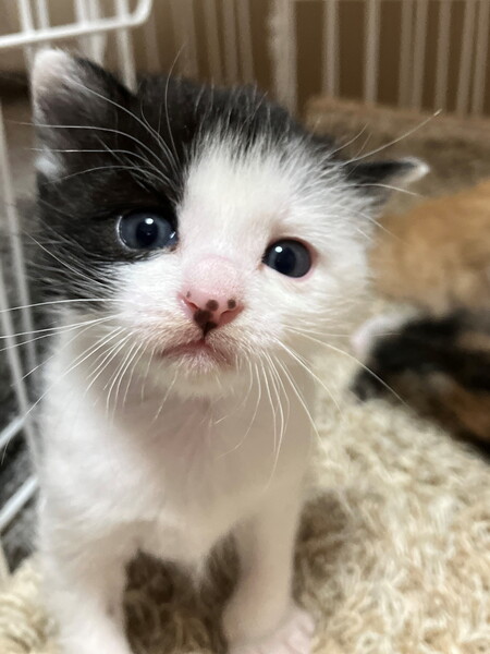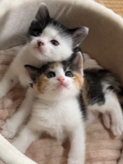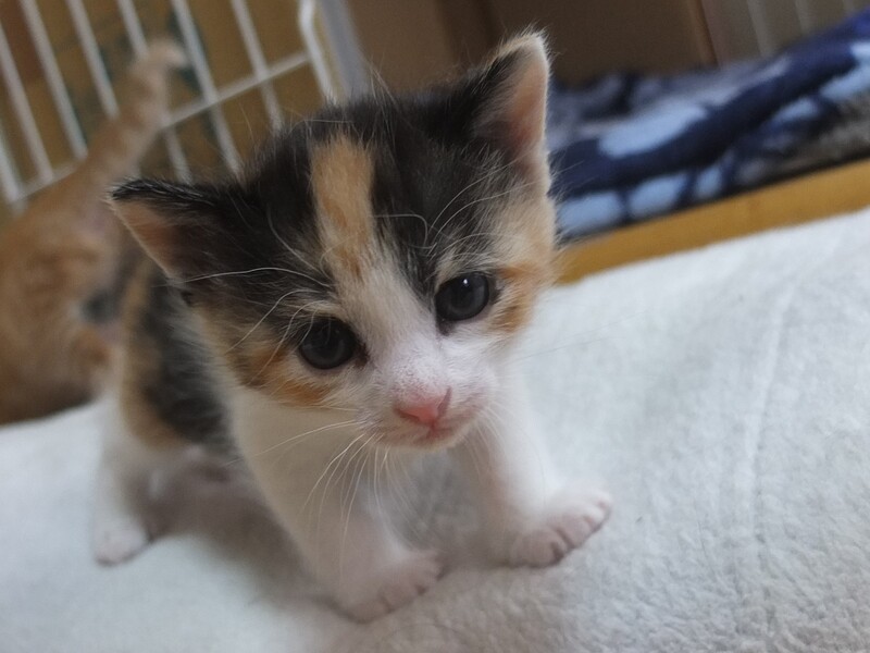 | 特徴(性格など) | 三毛猫♡のどかちゃん♡ まだ、1ヵ月ですが、それぞれの性格の違いが出てきました。 何をやっても一番最初に出来るのどかちゃん(´✪ω✪`)♡ おトイレも、離乳食のペロペロもみんなの見本になりました☆ プロレスの必殺技、両手をあげての体当たりはInstagramで人気者に 意外とお転婆です(*・ᴗ・*)و 白黒♡あおいちゃん♡ 好奇心旺盛なあおいちゃん。私が保護猫部屋に入っていくと 最初に必ず出てきて、足や背中に乗ります(*^^*) 個性的な前髪と両耳の先が白くてオシャレさんです☆♡ |