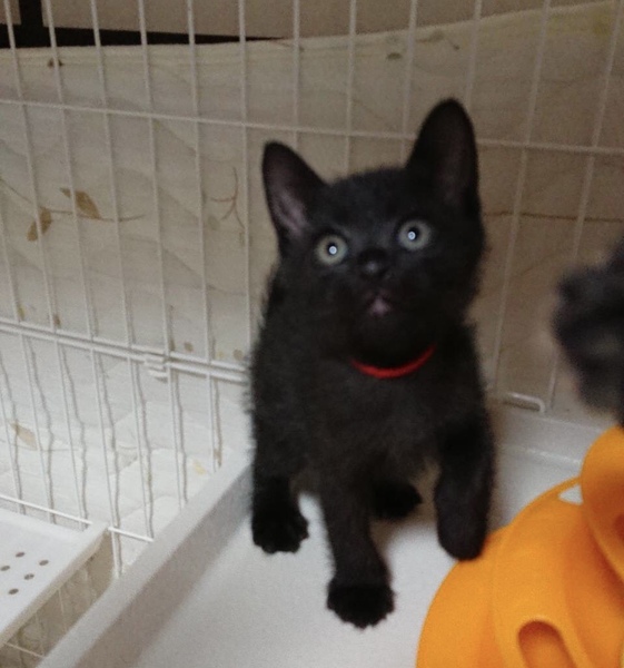| 特徴(性格など) | 魅力的な黒猫の子猫です。姉妹で預かっていますが、よく食べて、よく遊んでいます。預かり先の先住犬と先住猫とも仲良しになり遊んでいます。ママ猫と一緒に保護したので、おうちで生まれました。 | ||