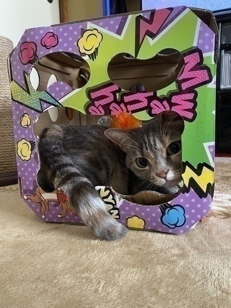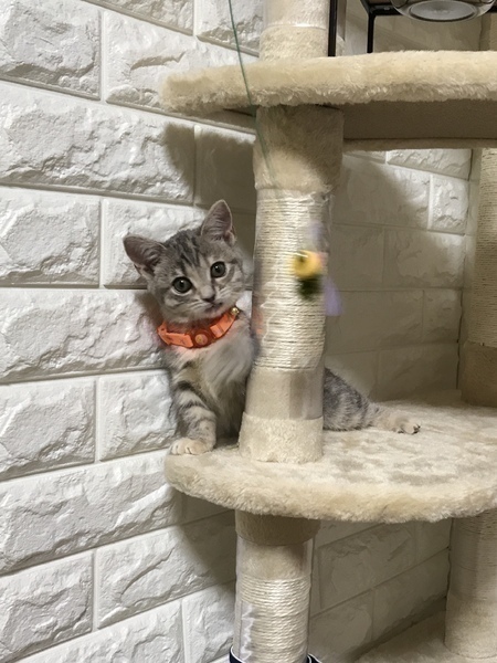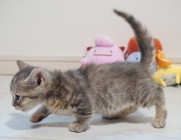 | 特徴(性格など) | 短足マンチカン✦ฺ ブルーパッチドタビーカラーの女の子♪ おもちゃが大好きで特に猫じゃらしとレーザーポインターが大好き! 元気いっぱい部屋中駆け回って遊びます✰︎ 甘えん坊で夜布団で寝ていると脇元に来てゴロゴロ喉を鳴らして二の腕をふみふみ♪ なぜだか決まって左脇腹(・◡ु︎‹ ) ✧︎* そして布団の上から脇の間や股の間に寄り添ってポカポカ暖かいお布団でおねんね❦︎ お尻をポンポン叩いてもらうのが大好きです。 ポンポン叩いてあげるとほんの4〜5回でゴロンと寝転がり、もっともっと甘えます❀︎ 身体を擦り付けて甘えて構ってちゃんアピールをして来る時がとても可愛い仕草です♡︎ʾʾ 他の猫との接触が苦手な性格です。 怖がりちゃん…爪切りが嫌いです♡︎ʾʾ 5枚目6枚目の写真は幼少期の頃です(・◡ु︎‹ ) ✧︎* |