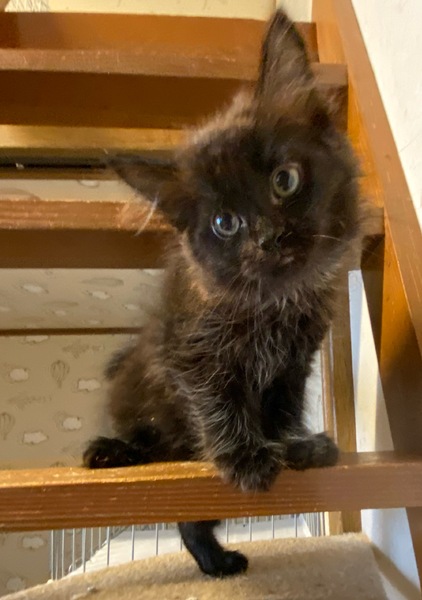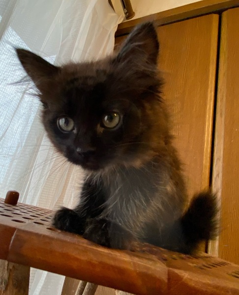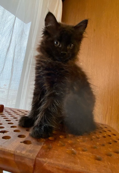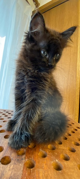 | 特徴(性格など) | 長毛のお母さんから生まれましたので、黒の長毛のような感じです。白が少し混じっています。保護された野良猫が妊娠していて、こちらで生まれ育ちました。 母猫と兄弟猫と一緒に過ごしていますので、 のびのび元気いっぱい遊んでいます。 |