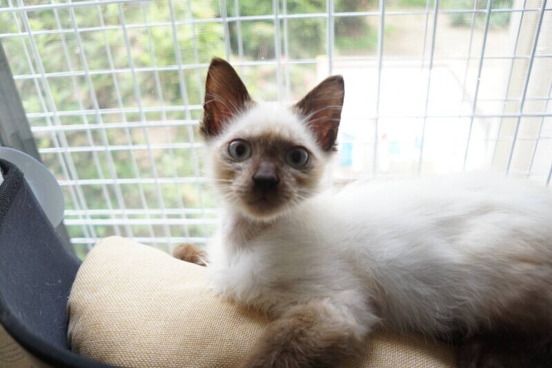 | 特徴(性格など) | ◆トーロくん 抱っこ大好きやや慎重派シャム風男の子 ●月齢の小さな子猫は、以下の条件についてご了承の上で応募をご検討下さい。 ◆高齢者のみのご家族からの子猫のお申し込みはお断りさせて頂きます。 ◆お留守番の少ないご家庭を希望します。 ◆小さなお子様のいるご家庭は状況によりお断りする場合がございます。 ○沖縄県内にて保護されました。 ○推定3ヶ月くらい(2022年5月中旬時点)のシャム風の男の子です。 ○しっぽはスラリと長め。 ○スリスリ、ゴロゴロ、ベタベタな抱っこ好きです。 ○最初はちょっと怖がりで、慎重派な印象です。 ○元気にすくすく育っています。 ○まだ小さな仔猫のため、お留守番の少ないおうちをお待ちしております。 ★ワクチン1回済み。 ★猫エイズ、猫白血病ともに陰性。 ★不妊手術は成長と体調を見て実施予定です。 ○5/22(日)開催の譲渡会に参加予定! 下の要項をお読みいただき、ぜひ会いに来てください♪ ☆★☆★☆★☆★☆★☆★☆★☆★☆★☆★☆ 5月22日(日)荏田にて譲渡会開催! ◎場所・・「島忠 荏田店」 神奈川県横浜市青葉区荏田西1ー3ー14 田園都市線「江田」駅より徒歩約7分 246号線江田駅交差点そば ◎日程・・5月22日(日)(雨天決行) ◎時間・・13時から16時 【15時30分受付終了】 (会場に利用可能な無料駐車場がございます。そちらをご利用くださいませ。) 今回はコロナ対策のため、制限を設けての開催となります。 *3密対策のため、当日12時30分より整理券を配布いたします。 *各回15分 *各回先着3組様 *参加の際は、マスクの着用、アルコール消毒のご協力をお願いいたします。 *当日は検温の上、体温が37度以上の方はご参加いただけません。 *混雑状況により、中止させていただく場合がございます。 ※参加予定の犬猫は体調により参加できない場合があります。ご了承ください。 ☆★☆★☆★☆★☆★☆★☆★☆★☆★☆★☆ |