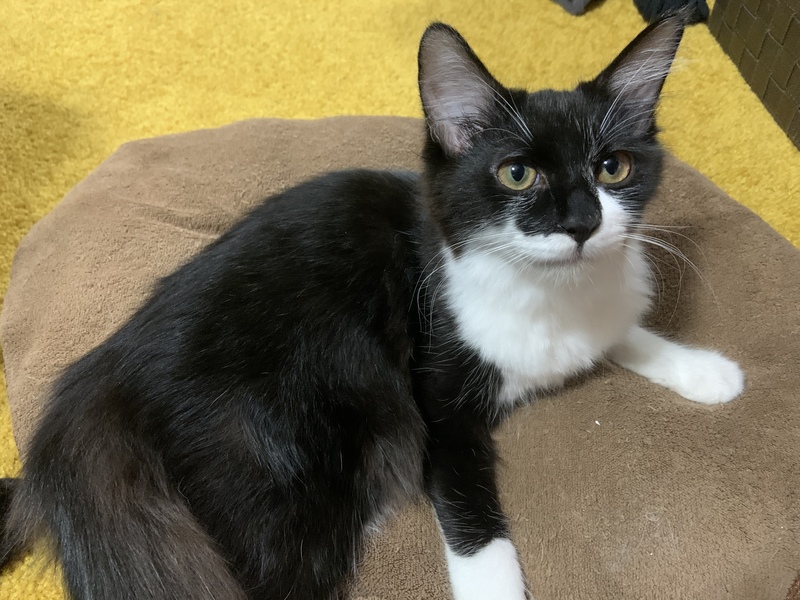 | 特徴(性格など) | 長毛 黒×白 恐らく男の子 兄弟の中で1番体が大きく食欲旺盛です。 あまり人を恐れず、自分から近寄って来ます。 毛がモコモコしているので母猫の長毛を受け継いでいると思われます。 ※まだ小さく血液検査はできていませんが、母猫の血液検査の結果は 猫免疫不全ウイルス(FIV)、猫白血病ウイルス感染症(FeLV)共に陰性の為、感染の可能性は限りなく低いとの事です。 |
