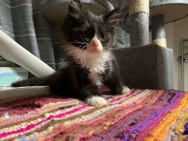 | 特徴(性格など) | 長毛 黒×白 性別不明 白と黒のバランスが絶妙のフワフワモコモコの猫です。母猫の長毛を受け継いでいると思われます。少し臆病な性格です。 ※まだ小さく血液検査はできていませんが、母猫の血液検査の結果は 猫免疫不全ウイルス(FIV)、猫白血病ウイルス感染症(FeLV)共に陰性の為、感染の可能性は限りなく低いとの事です。 |