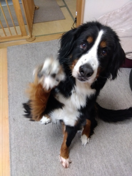| 特徴(性格など) | とても人やワンコが大好きな男の子です。 バーニーズらしいかわいいお顔です。大きな体をピッタリとよせて隣に座ってきます。 インターフォンに反応して吠えますが、来客者にはすぐに甘えます。 |