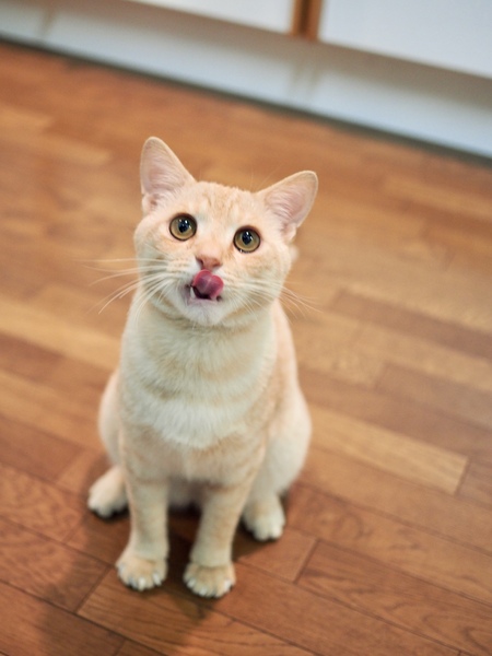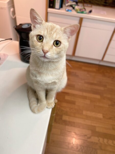 | 特徴(性格など) | 少し珍しいクリーム色のトラです。 少しやんちゃですが、甘えん坊です。 来客があっても初めての人でもすぐに近寄ってスリスリしています。 夜は布団に入って頭の横か足元で寝ていました。 性格なのか子猫だからなのかわからないのですが、キャットタワーなどでは動き足りないようで1日3回ほど猫じゃらしで遊んであげていました。 鈴と羽のついた猫じゃらしが好きでその音が鳴ると遠くから走り込んできます。 |