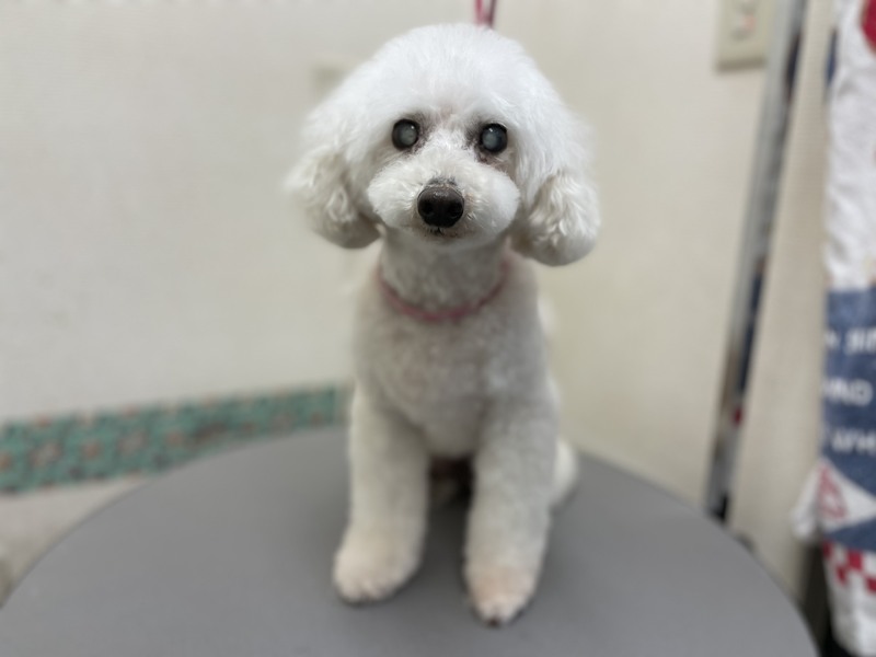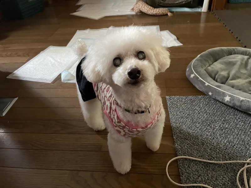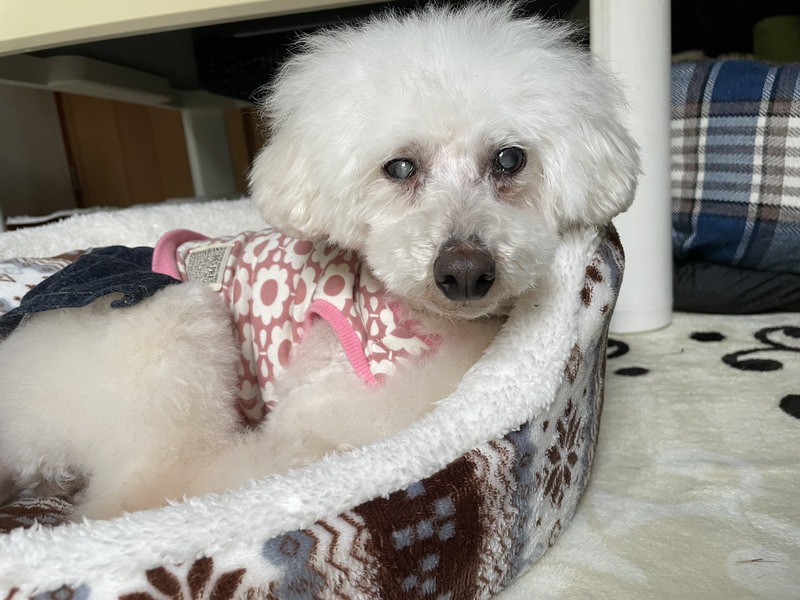 | 特徴(性格など) | トイプードルの女の子。保護時の年齢は11歳、体重4.5キロです。仮の名前を「卯月(うつき)」と名付けました。 保護時から目が白く、見えてないか、少しだけ見えてるかだと思います。 でもすぐに環境に慣れる事が出来るので、臆することなく自由に歩きまわり、生活に不自由なことはありません。 性格は人が大好きで、いつも側に寄り添って撫でて欲しいタイプです。 他犬とも問題無く過ごせます。 トイレはシートトレーニング中です。賢いのでほぼ出来るようになりつつあります。 お散歩は今はしていません。1日数回庭に出しています。庭に出すと自由に過ごしてます。 ご飯はドライフードです。食欲旺盛です。 鳴くことは、ほぼありません。 留守番や就寝時はリビングフリーです。 イタズラ、トラブルなどはありません。 目のハンデはありますが、一緒に暮らせばそのハンデも全く感じさせないほど、可愛く愛らしいコです。 フィラリアは陰性です。他に健康上の問題はありません。 現在は一時預かりボランティアさま宅で新しい家族を待っています。 現在の様子はコチラ → http://yaya325.blog94.fc2.com/ |