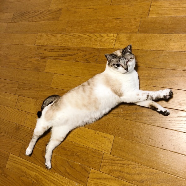 | 特徴(性格など) | ★プロフィール 仮名:くりす 毛色:ストロベリー系のアイボリー 種類:シャム系のMix 体重:3.6kg 月齢:2歳 日々の様子はツイッターでご覧いただけます! → @molko4126 ★見た目 ごまふアザラシの赤ちゃんのようなフォルムと柄です。 よくリビングの真ん中に、浜辺に打ち上げられたように倒れています。 目の形もまん丸で、可愛らしい肉まんのような印象です。 これ以上(太ることはあっても)骨格自体が大きくなる可能性は低いです。 小さい頃の猫風邪のため、隻眼になっています。 とても美しいブルーアイで、黒目がちの子です。 目については東京の動物眼科専門の「トライアングル動物病院」でフルセットの検査を受け、 今後悪化する可能性はないとのお墨付きをいただいています。 ★性格 甘ったれで弱い子です。優しく接してあげてください。 「にゃー」とは鳴かず、「キューキュー」と鳴きます。 名前を呼ぶと返事をします。「おいで」と呼びかけると本当に来ます。 初めての人にも抱っこをせがむほどの社交性があります。 はじめてのお客さんのお膝に乗って寝るぐらい警戒心がありません。 あまりにも警戒心がないので、野生に戻したら次の日にのたれ死んでしまうのではないかと心配してしまいます。 よく何かを人に話しかけています(猫語なのでよくわかりません・・・)。 足が短いのでジャンプに失敗することもあります。 他の猫ちゃんとのおにごっこが大好きです。 ちょっかいを出すのは好きですが、喧嘩にはとても弱い子です。たまに我が家の先住さんから教育的指導という名の猫パンチを受け、「キューン」と鳴いて人のお腹に頭を突っ込んできます。 いたずらや爪とぎトイレの失敗はしません。爪とぎは猫用の物を使ってやります。 爪切りもブラッシングもなんでも好きなだけやらせてくれます。 一緒に生活したらきっと幸せな気持ちにさせてくれる、そんな子です。 一人(または1匹)がストレスになってしまう子です。 お留守番が少ないご家庭だとありがたく存じます。 |