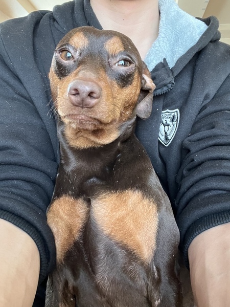 | 特徴(性格など) | タンデカ目のチョコタン男子です 性格はとても甘えん坊で構って欲しい感強めの格好良い子です セルフでの爪切り等出来ます お座り、待て等簡単なコマンドは可能です 話し掛けると首を傾げ何を言ってるのか理解しようとしてる様に思え可愛いです 名前を呼ぶと嬉しそうにドコドコ走ってきます 顔がデカく筋肉量も多いので小さめのピットブル感もあります 車でドライブ大好きです 犬や人大好きです 体も吠え声も態度も全てデカいです(人をダメにするクッションでヘソ天で占領します。) 小型犬ですが体重10〜15kg程あります 断尾断耳していません 犬歯等歯先が丸いです |