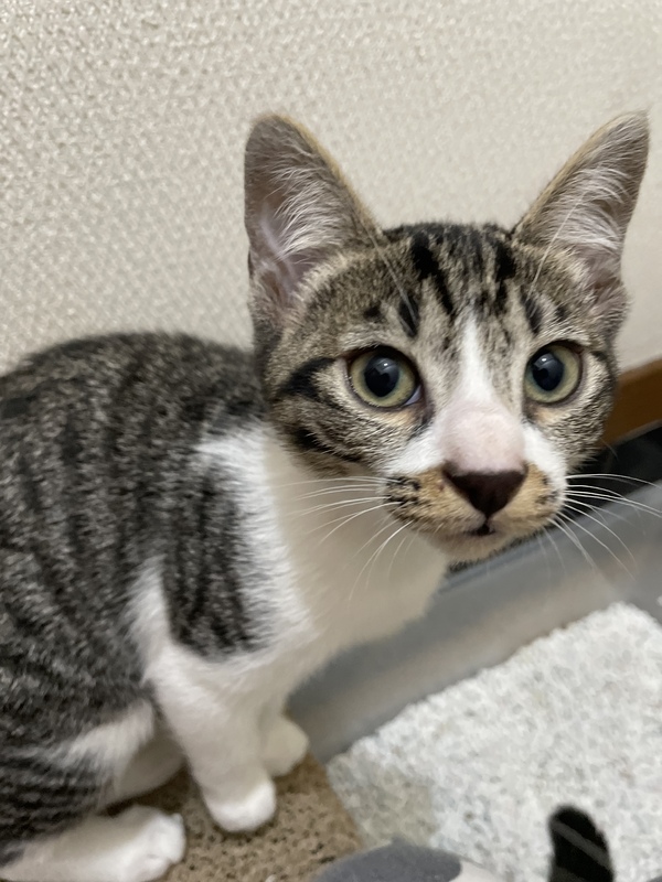| 特徴(性格など) | 白キジ柄の美人さんです。よく遊び、よく食べ順調に体重も増えています。もの怖じしない性格です。 | ||