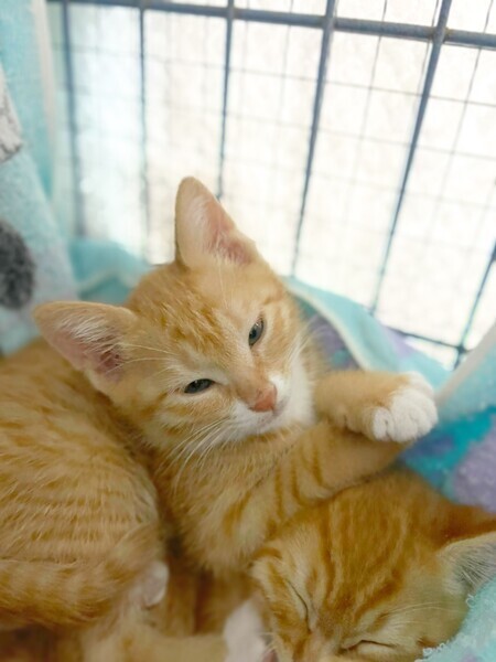 | 特徴(性格など) | 保護したばかりでまだ少し怖いみたいです。でもこれからもっと慣れてくると思います。 性格もこれから分かってきます。姉妹で仲良く遊んでいます♪姉妹のスイちゃんも募集中です(^^) ぜひ二匹に会いに来てください。 ・ノミダニ回虫駆除済み ・エイズ(−) 白血病(−)検査済み ・3種混合ワクチン接種済み |