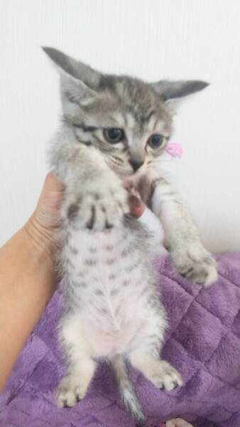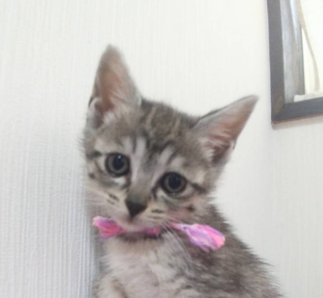 | 特徴(性格など) | ①パフェ ②♀1ヵ月半くらい サバ ③5兄妹の中でいちばんしっかり者の女の子です。いつも兄妹を舐めてあげてる姿が健気で可愛いです。 姉妹一緒の譲渡希望。 単身者NG 高齢者不可 |