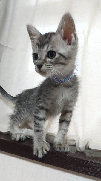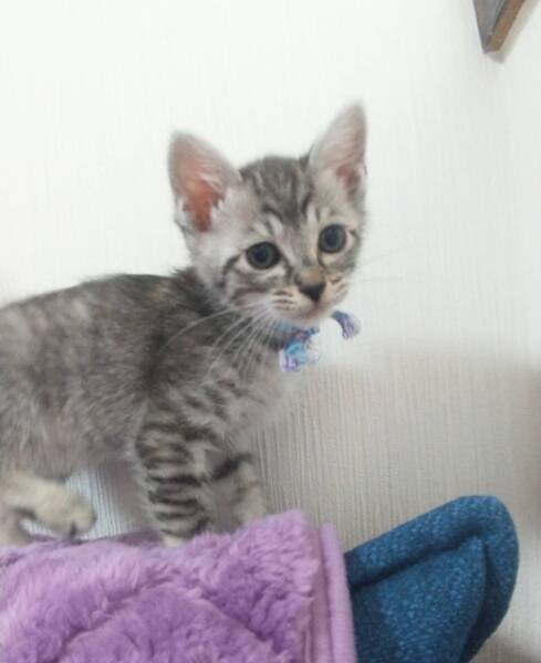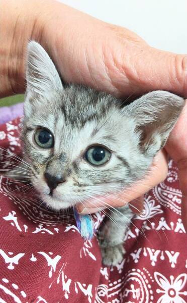 | 特徴(性格など) | 【仮名】 パフェ 【特徴】 可愛いお顔 サバ 【性格】 5兄妹の中でいちばん甘えん坊女子です。撫でるとずっとグルグル音が止まりません 笑 まだ小さいので兄妹のどの子かと一緒に家族にして頂けるお家を希望します。 ※2匹譲渡希望 ※単身者応募不可 ※60歳以上の方の応募不可 |