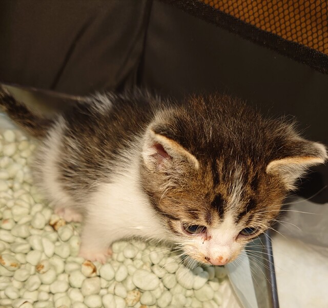 | 里親募集する理由 | 自宅の庭に来ていた母猫が二匹の子猫を残し交通事故死しました 子猫はまだ、生後2週間くらいだったため、不憫に思った保護主さんがスプーンでミルクを与え続け、生後3週間が過ぎた頃、ボランティアに託され、私が、預かりました この子はそのうちの一匹です 我が家では、すでに12匹いてこれ以上飼えないため、里親さんを募集します |