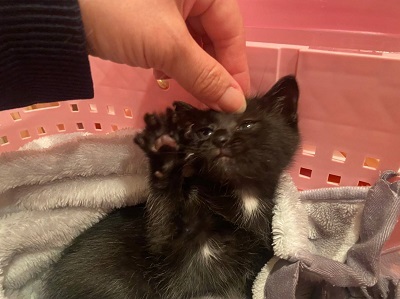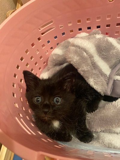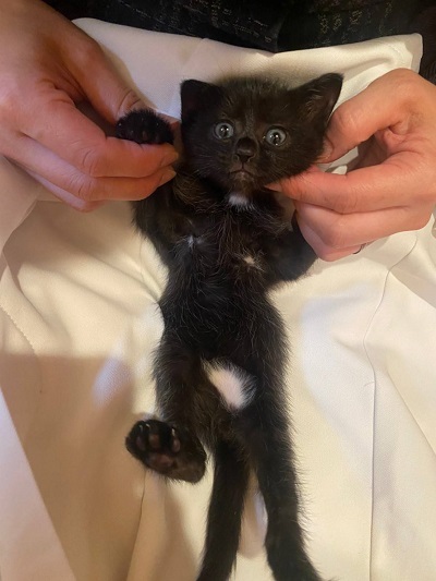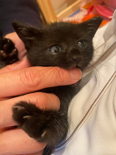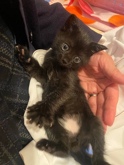 | 特徴(性格など) | 体重:430グラム位 : 甘えん坊で人と遊ぶのが大好きな子です。 遊びすぎて電池切れしてコテンと寝ちゃいます。 黒猫…と思いきや! お腹側の大事な所には真っ白な毛が(笑) そんな姿も可愛いですよ。 今、離乳食頑張ってます‼️ お渡しにはもう少し待って頂ける方、まだ小さいのでお留守番が短い方を優先させて頂ければと思います。 |