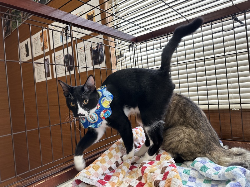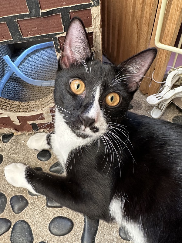 | 特徴(性格など) | (仮名)風(ふう) 黒白でひげ柄あり しっぽは長めでカギしっぽです。 元気に走り回ってます。 性格:少々ビビりですが、慣れるのは早いようです。 ウィルス検査:エイズ、白血病は共に陰性です。 |