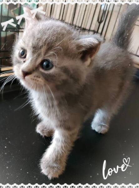 | 特徴(性格など) | 仔猫らしく遊び好きで活発です。 男の子なので骨格もしっかりしており、真ん丸です。 将来的にかなり大型の猫ちゃんになると思われます。 |