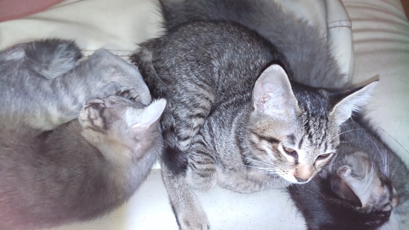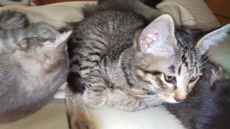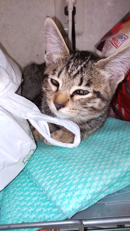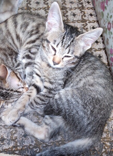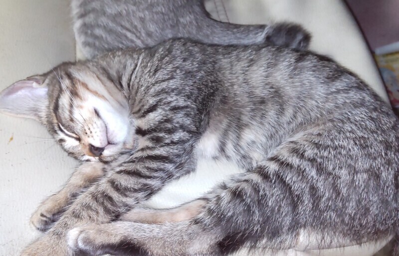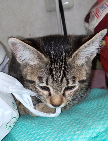 | 特徴(性格など) | キジトラで少し黒ぽいです。母猫が小柄なので小柄だと思います。元気で走り回っています。食いしん坊で甘えん坊です。 | ||