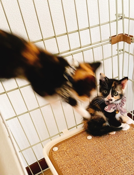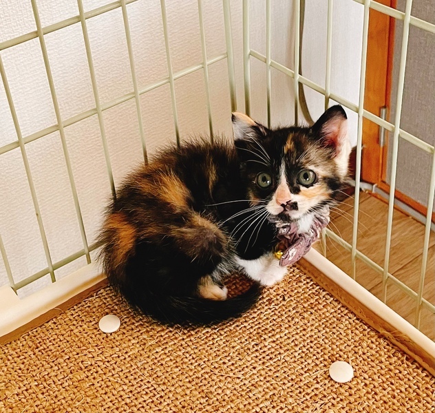 | 特徴(性格など) | 母猫ウイルス検査 両マイナス 2022/05/25に保護 人慣れ△ 近付くと逃げるけれど、足が遅いので手捕りできるくらいでした 保護してから始めは軽くシャー!としていましたが引っ掻きや噛み付きはなし 目やにがありましたが点眼治療3日で必要がないくらいになりました 2022/05/28現在、生後38日くらい 体重497g カリカリを上手に食べますが動作はまだ素早くありません ウエットフード、粉ミルク、ドライフードを適宜与えています トイレは始めから完璧⭐︎ ノミ、ダニ、お腹の虫駆虫済み フィプロフォートスプレー ヨードシャンプー トロイイヤードロップス ドロンタール 兄妹に三毛♀がもう1匹いる為【金さん】と仮の名前を付けました。 遠山の金さん模様の女の子です。 |