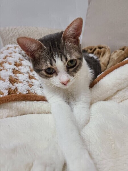 | 特徴(性格など) | ◆ミラクルちゃん 大怪我から復活の奇跡のキジ白女子 ○栃木県内にて保護されました。 ○推定4歳くらい(2025年7月下旬時点)のキジ白ハチワレの女の子です。 ○尻尾は中ぐらいの長さで、先が少し曲がっています。 ○何かに噛まれたのか首の骨が折れた状態で保護されました。肺炎も患い危険な状態でしたが、懸命な処置により奇跡の復活!今はすっかり元気になり、普通に生活しています。 ○保護前に患ったであろう感染症の名残りで、右眼は涙が出やすく、右鼻は鼻水が出やすいですが、元気いっぱいです。 ○マイペースな子で、遊ぶ時は元気に走り回っていますが、割とまったりと一日を過ごしている感じです。 ○怪我によりわずかに斜頸ですが、ちょっぴり右に傾いているお顔がとても可愛いです。 ☆単身のかたはご相談ください。 ★ワクチン1回接種済み、不妊手術済み。 ★猫エイズ、猫白血病ともに陰性。 ★首の骨が折れた状態で保護され、肺炎も患いましたが、今はすっかり元気になり普通に生活しています。 ★保護前の感染症の名残りで、右眼は涙が出やすく、右鼻は鼻水が出やすいです。 ★怪我により、わずかに右側に傾いた斜頸があります。 ○YouTubeにも動画を上げています。こちらもご覧下さい。 「ミラクル」その1 https://youtu.be/E0gfpMef0BU 「ミラクル」その2 https://youtu.be/rJWV1gKKRd8 ★★お見合いを設定することも可能です。まずはお申込みください★★ |