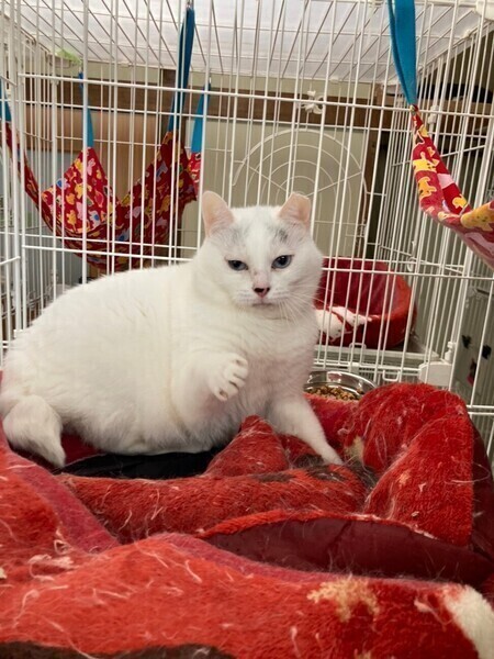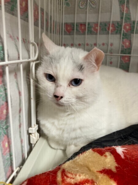 | 特徴(性格など) | ◆山ちゃん 綺麗なブルーアイがチャーミングな女の子 ○東京都内の多頭飼い崩壊現場から保護されました。 ○保護の様子は「坂上どうぶつ王国」にて取り上げていただきました。 ○推定7〜8歳くらい(2022年4月時点)のほぼ白猫の女の子です。 ○尻尾は幸せを呼ぶと言われている鍵しっぽです ○身体は白色で、おでこに小さな御山模様があり、お鼻が黒めで、目がキレイなブルーな所がチャームポイントです。 ○最近、撫でられたりブラシされたりする気持ち良さを覚えてきましたが、慎重な所がありますので、時間をかけてゆっくり仲良くなってくださる里親様をお待ちしています。 ○ 猫じゃらしでムキになって遊ぶ所が可愛いです。 ★ワクチン済み、不妊手術済み。 ★猫エイズ、猫白血病ともに陰性。 ○YouTubeにも動画を上げています。こちらもご覧下さい。 「山ちゃん」その1 https://youtube.com/shorts/qQHsnoZeDVw 「山ちゃん」その2 https://youtube.com/shorts/X0rEiVeMzxU 「山ちゃん」その3 https://youtu.be/fxFuPUfprV8 ☆単身のかたはご相談ください。 |