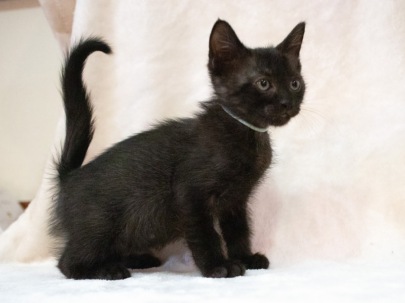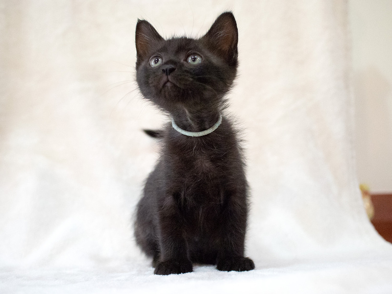 | 特徴(性格など) | 元気いっぱいで、人に慣れている黒猫の子猫です。 長くてまっすぐのしっぽが可愛いです。 エイズ白血病陰性 ワクチン済み・駆虫済み・マイクロチップ挿入。 同じく募集している茶色い男の子は兄弟です。 |