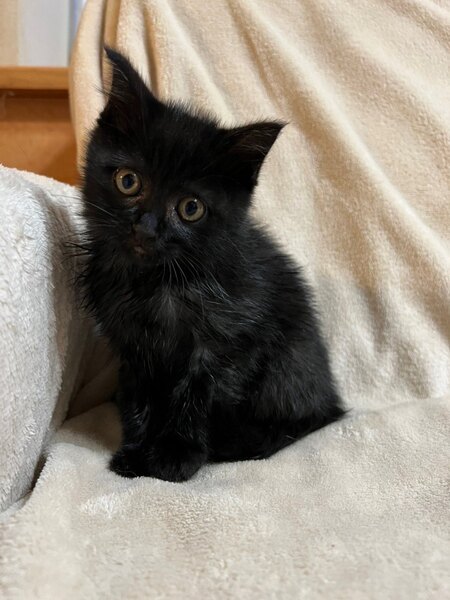 | 特徴(性格など) | 仮名:ジン君、生後約二カ月。元気いっぱいでコロコロしている可愛い男の子です。ウィルス検査陰性、 3種ワクチン一回済み、検便検査と駆虫済みです。 |