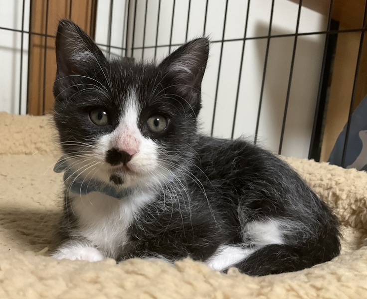 | 特徴(性格など) | 立派なお髭と眉毛がチャームポイントの、元気で活発、好奇心旺盛なハチワレの男の子です。 タキシードを優雅に着こなしているような柄で、黒い被毛の先端がわずかに白くなっており、グレーのようにも見受けられます。 生まれた時から兄妹の中でひときわ身体も大きく、お兄ちゃん肌でずっしりと落ち着いております。 食欲旺盛でご飯が大好きです! 自分のご飯を真っ先に食べ終えては、他の子のお皿を欲しそうに眺めています。 ミルクから人の手で育てられているため、人がお母さんで人が大好きです。 生まれた時からずっと一緒に育ってきた、兄妹のあきが良き遊び相手となっておりますので、あきと一緒に迎えて下さるご家庭を希望します。 兄妹一緒であれば、お留守番があっても寂しくないと思います。 (一匹のみをご希望の方は応募をご遠慮下さい) 育ち盛りのふゆの日々の様子や、育児日記の悲喜こもごもなどをインスタグラムに毎日アップしています。 子猫との生活がどんなものか、また、ふゆの性格なども垣間見えるかと思いますので、ぜひご覧下さい。 ↓↓↓ http://instagram.com/kemikemi1206 |