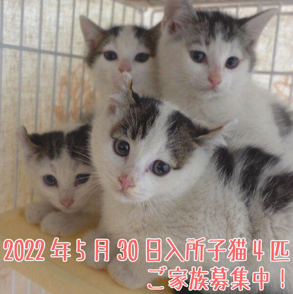 | 特徴(性格など) | 大変かわいらしい子猫の兄弟姉妹です。 二匹はアメリカンカールが入っているような耳です。 健康状態は良さそうです。 まだ昨日保護されたばかりで、性格は見えていません。 まだオスメス判別していません。 4匹ですので、2匹の里親さん御希望の方が優先される可能性があります。 |