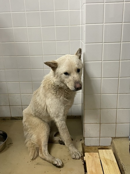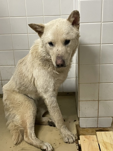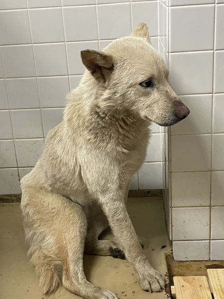 | 特徴(性格など) | 毛色…白色 穏やかな男の子です ガリガリに痩せていて白色の毛も汚れ過酷な生活なんだと想像できます 唸りも威嚇もなくオヤツも食べてくれました 触れます |
