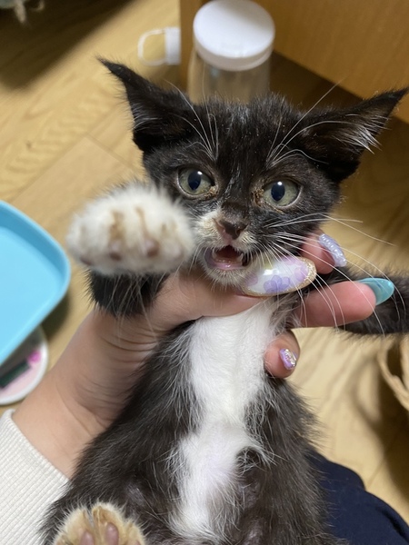 | 特徴(性格など) | ハチワレの男の子 小柄ですが愛嬌があり、しっぽはストレートです! ウイルス検査、白血病共に陰性です。 ワクチン1回目済 ご飯はドライ、ウエット混合で卒乳済 |